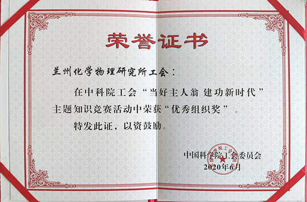 蘭州化物所榮獲2020年中科院工會(huì)知識(shí)競(jìng)賽優(yōu)秀組織獎(jiǎng)