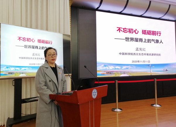 報(bào)告會特邀2019 年“中國科學(xué)院年度感動人物”入選者孟憲紅研究員作《不忘初心、砥礪前行——世界屋脊上的氣象人》主題報(bào)告。孟憲紅研究員從“懷揣夢想、千里求學(xué)”“情系高原、筑夢大氣”“潛心科研、銳意進(jìn)取”“不忘初心、”砥礪前行四個(gè)方面分享了她的求學(xué)、科研經(jīng)歷和感悟。從樸實(shí)無華的語言中令人看到她帶領(lǐng)團(tuán)隊(duì)始終秉承“特別能吃苦、特別能戰(zhàn)斗、特別能奉獻(xiàn)、特別能團(tuán)結(jié)、特別能忍耐”的“牦牛精神”,面對困難她披荊斬棘、堅(jiān)守信念,把科學(xué)研究當(dāng)作自己的生命,用勤奮鋪就科研之路,用韌性點(diǎn)燃科研之旅。