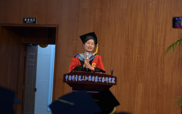 畢業(yè)典禮在莊嚴(yán)的國歌聲中拉開序幕。優(yōu)秀畢業(yè)生代表閆榮格博士首先發(fā)言。她代表全體畢業(yè)生懷著感恩的心和美好的希望,向培養(yǎng)他們的研究所和辛勤付出的導(dǎo)師們送上了最真摯的謝意和最美好的祝福。她說明年將是西高所建所60周年,在過去的數(shù)十年間,一批又一批科學(xué)家義無反顧地來到青海,扎根青海,克服困難,奉獻(xiàn)高原,為科學(xué)前沿、國家需求和地方發(fā)展做出了重大貢獻(xiàn),培養(yǎng)了一大批杰出的人才,很榮幸作為西高所的一份子,很榮幸,這里是大家的精神家園。在此出發(fā),胸懷夢想不懈奮斗!
