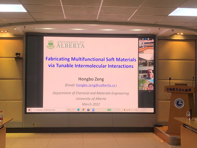 3月11日,中國科學(xué)院蘭州化學(xué)物理研究所固體潤滑國家重點實驗室邀請加拿大工程院院士、加拿大阿爾伯塔大學(xué)Hongbo Zeng教授作在線學(xué)術(shù)報告,報告題目為“Fabricating Multifunctional Soft Materials via Tunable Intermolecular Interactions”。報告由副所長周峰研究員主持,相關(guān)領(lǐng)域科研人員100余人參加了報告會。