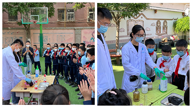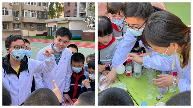 來自羰基合成與選擇氧化國家重點實驗室、固體潤滑國家重點實驗室、中科院西北特色植物資源化學(xué)重點實驗室和環(huán)境材料與生態(tài)化學(xué)研究發(fā)展中心的8名職工和研究生,開展了“CO2‘看得見’”系列互動實驗、“靜電‘吸引’‘懸浮’及釋放”實驗、“美麗的彩虹”系列實驗、“大象牙膏”實驗等4組實驗。他們用通俗易懂的語言介紹實驗用品和注意事項,結(jié)合生活中的現(xiàn)象講解實驗原理,認真仔細展示實驗步驟,現(xiàn)場答疑解惑,引導(dǎo)學(xué)生們自己動手去感受科學(xué)實驗的樂趣。