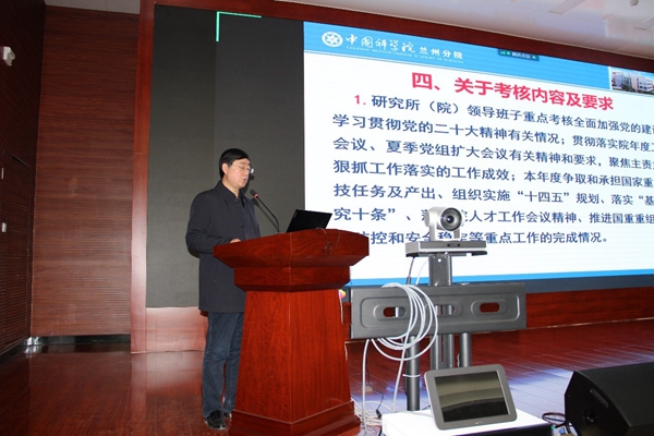 蘭州分院分黨組成員、副院長趙培慶就西北研究院領(lǐng)導(dǎo)班子與領(lǐng)導(dǎo)人員2023年度考核工作做了說明。