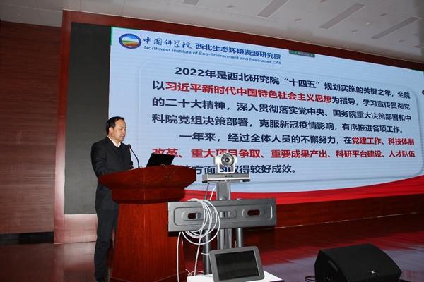 馮起指出,2022年是西北研究院“十四五”規(guī)劃實(shí)施的關(guān)鍵之年,全院以習(xí)近平新時(shí)代中國特色社會主義思想為指導(dǎo),學(xué)習(xí)宣傳貫徹黨的二十大精神,深入貫徹落實(shí)黨中央、國務(wù)院重大決策部署和中科院黨組決策部署,克服新冠疫情影響,有序推進(jìn)各項(xiàng)工作。在西北研究院全體人員的共同努力下,體制機(jī)制改革、重大項(xiàng)目爭取、重要成果產(chǎn)出、科研平臺建設(shè)、人才隊(duì)伍建設(shè)、創(chuàng)新文化建設(shè)等各方面均取得顯著成效。