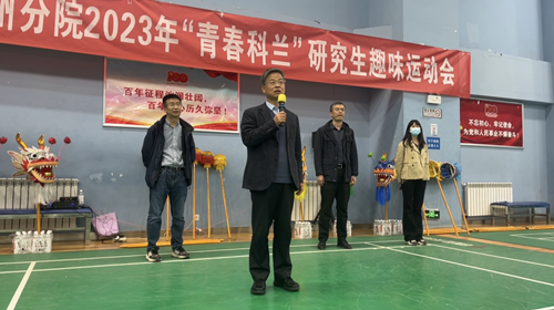 為認(rèn)真貫徹落實院及國科大關(guān)于做好學(xué)生思政工作的部署安排,切實提升分院系統(tǒng)校園文化建設(shè),3月30日下午,蘭州分院在蘭州市體育公園運動館舉辦了2023年“青春科蘭”研究生趣味運動會。蘭州分院分黨組副書記陳改學(xué)出席活動并講話。
