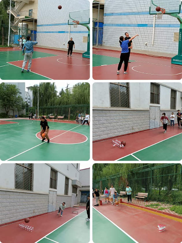 師生籃球友誼賽分導(dǎo)師組和學(xué)生組,最終學(xué)生組以46比40的成績(jī)戰(zhàn)勝導(dǎo)師組?;@球趣味活動(dòng)包括定點(diǎn)投籃、趣味“保齡球”、籃球蹦蹦跳和天旋神射手四個(gè)項(xiàng)目,根據(jù)規(guī)則分別獲得不同數(shù)量的印章,最終通過(guò)累計(jì)印張數(shù)評(píng)出不同等次的獎(jiǎng)勵(lì)。