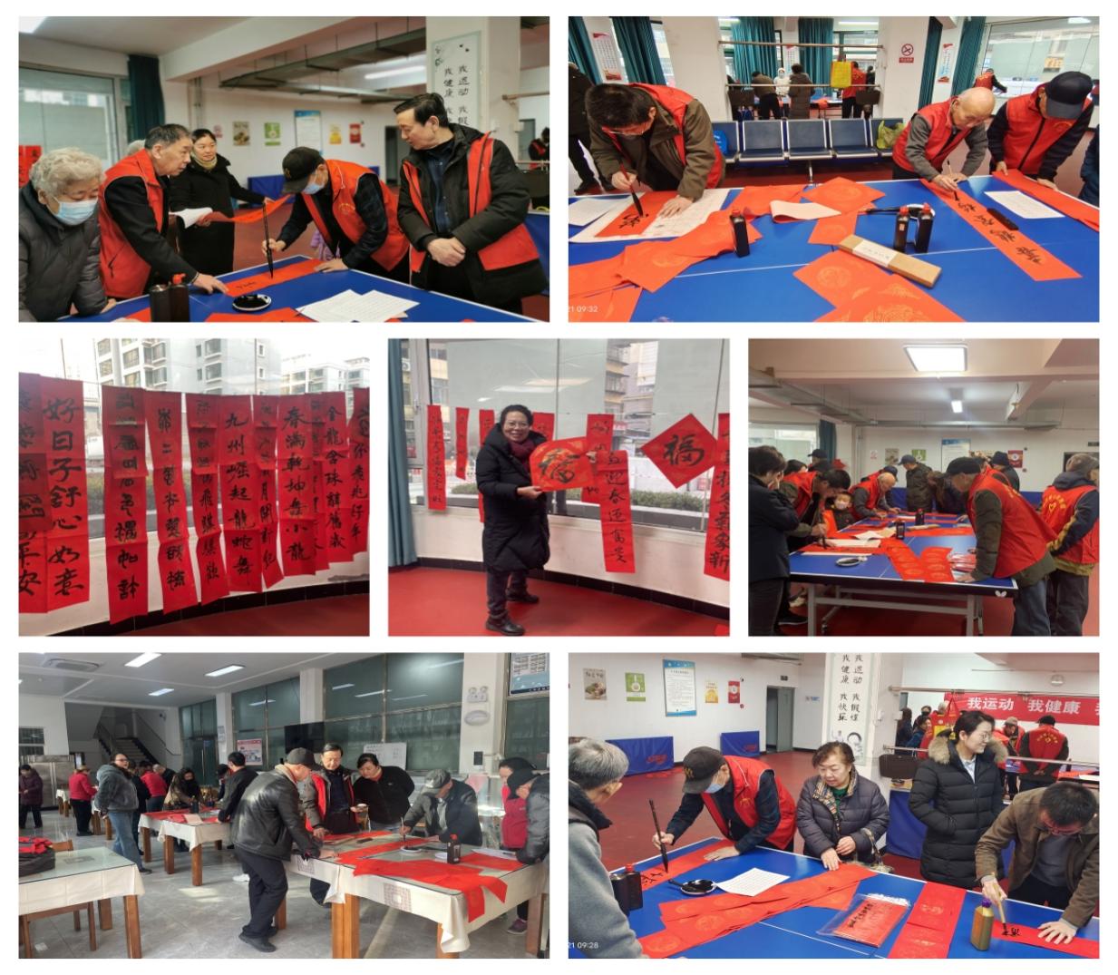 活動分為兩個時段,在東崗區(qū)和北院區(qū)同步開展。作為老年志愿者,靳根明、宋高才和胡剛三位書法愛好者傾情奉獻,揮毫潑墨,筆走龍蛇,將祝福付諸筆端。其余志愿者各司其職、高效協(xié)作,確?;顒佑行蜻M行?;顒蝇F場氣氛祥和而溫馨,共為轄區(qū)居民送出春聯(lián)180余幅、福字180余個。