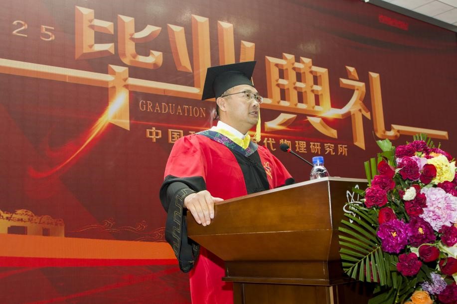 導師代表、原子物理中心副主任張少鋒研究員向畢業(yè)生們送上了真摯的祝福與囑托。他期望大家堅守科學精神,既有仰望星空的探索勇氣,也有腳踏實地的務實品格,更需懷抱家國情懷與感恩之心。
