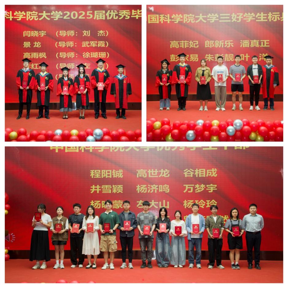典禮上,劉作業(yè)副院長、近代物理所核物理中心首席科學家張玉虎研究員、材料研究中心副主任段敬來研究員分別為優(yōu)秀畢業(yè)生、三好學生標兵和優(yōu)秀學生干部頒發(fā)了榮譽證書。