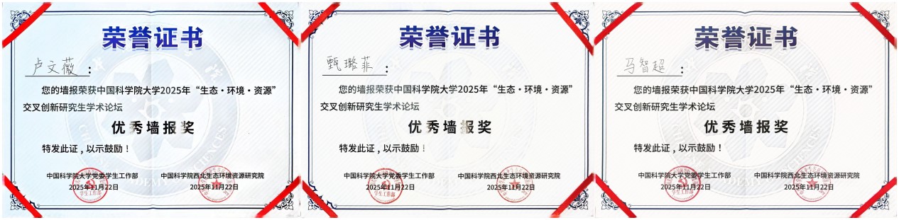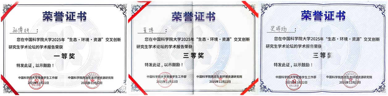 論壇設(shè)置“生態(tài)與環(huán)境領(lǐng)域組”“資源與工程領(lǐng)域組”及“弘揚(yáng)科學(xué)家精神與研究生思政教育管理研討組”三大專題板塊,聚焦國(guó)家戰(zhàn)略需求與科技前沿,推動(dòng)學(xué)科融合與協(xié)同創(chuàng)新。青海鹽湖所研究生緊扣青藏高原生態(tài)安全屏障、柴達(dá)木盆地資源高效利用與環(huán)境保護(hù)等關(guān)鍵科學(xué)問題等多個(gè)方向進(jìn)行學(xué)術(shù)報(bào)告和墻報(bào)展示?,F(xiàn)場(chǎng)討論熱烈,學(xué)術(shù)氛圍濃厚。通過這一高水平平臺(tái),青海鹽湖所研究生不僅展示了最新的科研進(jìn)展,更與兄弟院所建立了深入的學(xué)術(shù)聯(lián)系,為后續(xù)合作奠定了良好基礎(chǔ)。參會(huì)研究生們憑借出色表現(xiàn),成績(jī)斐然。孫博妍榮獲優(yōu)秀學(xué)術(shù)報(bào)告一等獎(jiǎng);董博與史暉煬榮獲優(yōu)秀學(xué)術(shù)報(bào)告三等獎(jiǎng);馬智超、甄璐菲、盧文薇的墻報(bào)榮獲優(yōu)秀墻報(bào)獎(jiǎng)。