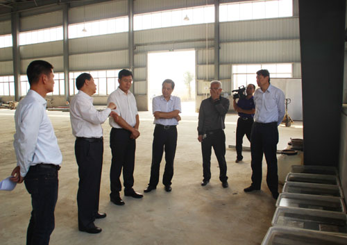 參觀板材生產(chǎn)線和新型海工鎂水泥試驗(yàn)場地