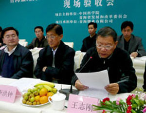 高技術(shù)產(chǎn)業(yè)化示范工程現(xiàn)場驗收會在西寧召開。會議由中國科學(xué)院計劃局副局長潘鋒主持,青海省人民政府副秘書長鐘通蛟,中國科學(xué)院基本建設(shè)局副局長王志剛,中國科學(xué)院蘭州分院副院長楊生榮,青海省海西州人民政府副州長劉小秦,西部礦業(yè)集團(tuán)公司總裁白永強(qiáng),青海鹽湖研究所所長馬海州、黨委書記胡彥明和來自中國科學(xué)院、青海省政府、海西州政府及各相關(guān)單位的四十多位代表參加了會議。