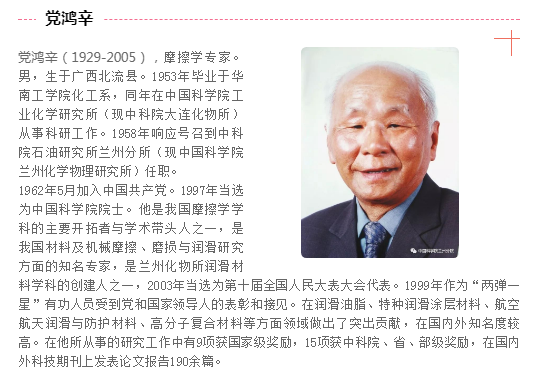 提起中國摩擦學(xué)的發(fā)展,離不開一個(gè)人——中國科學(xué)院蘭州化學(xué)物理研究所黨鴻辛。
