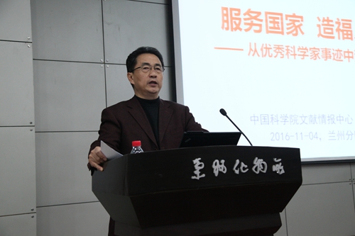 11月9日上午,中國科學(xué)院蘭州分院系統(tǒng)召開“兩學(xué)一做”學(xué)習(xí)教育第四專題“學(xué)宗旨,創(chuàng)新科技為民”學(xué)習(xí)會,邀請中國科學(xué)院文獻(xiàn)情報中心黨委書記兼副主任何林作了題為《服務(wù)國家,造福人民——從優(yōu)秀科學(xué)家事跡中汲取營養(yǎng)》的主題報告,蘭州地區(qū)院屬各單位領(lǐng)導(dǎo),黨委、紀(jì)委委員、黨建部門負(fù)責(zé)人、黨支部書記、支部委員和黨員代表,以及分院機關(guān)在職全體黨員,分院直屬單位負(fù)責(zé)人、黨支部書記,離退休黨支部(總支)書記等近200人參加學(xué)習(xí),學(xué)習(xí)報告會由蘭州分院分黨組書記謝銘主持。